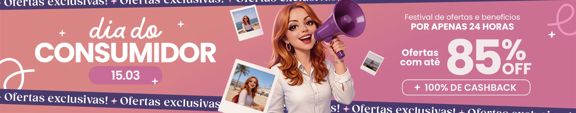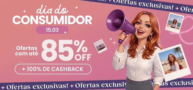 +85% OFF e 100% de cashabck em todas as compras acima de R$149,90